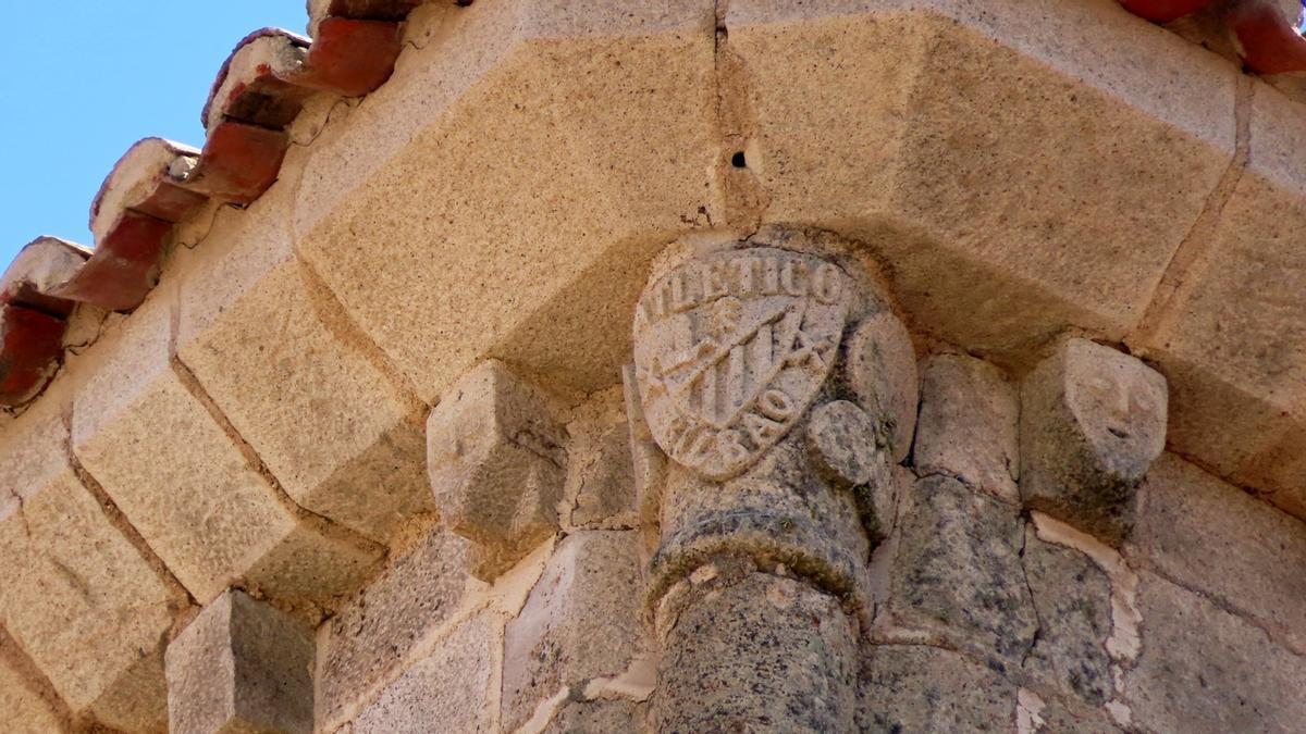 El escudo del Athletic Club aparece esculpido a modo de capitel en su estructura. Tal como el astronauta o el dragón que come un helado que aparecen en la Catedral Nueva de Salamanca, es un añadido reciente: Antonio Serván, el artesano a cargo de realizar los cincuenta y ocho capiteles en piedra, decidió hacer del equipo de sus amores el colofón de su obra.