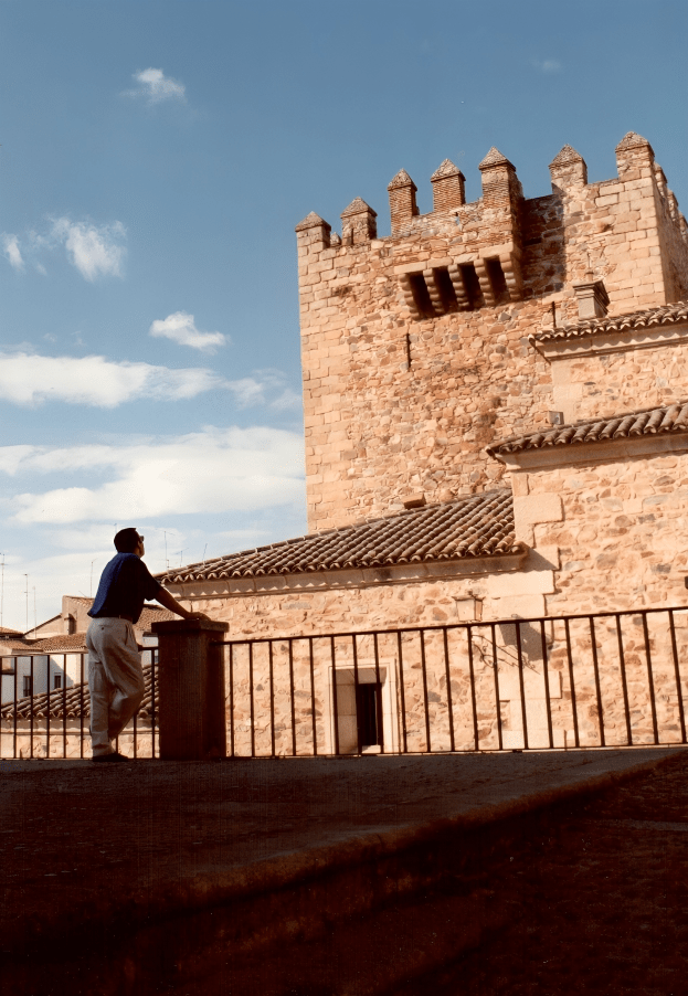 La última gran etapa del viaje nos llevó a Trujillo, una ciudad que impresiona incluso antes de entrar en su casco histórico: aparece sobre un cerro granítico coronado por un castillo medieval y rodeada de un paisaje austero, luminoso y profundamente extremeño. Trujillo es, sobre todo, una ciudad de piedra e historia, donde cada palacio, cada arco y cada callejuela recuerdan que aquí nacieron figuras tan decisivas para la historia global como Francisco Pizarro y Francisco de Orellana.