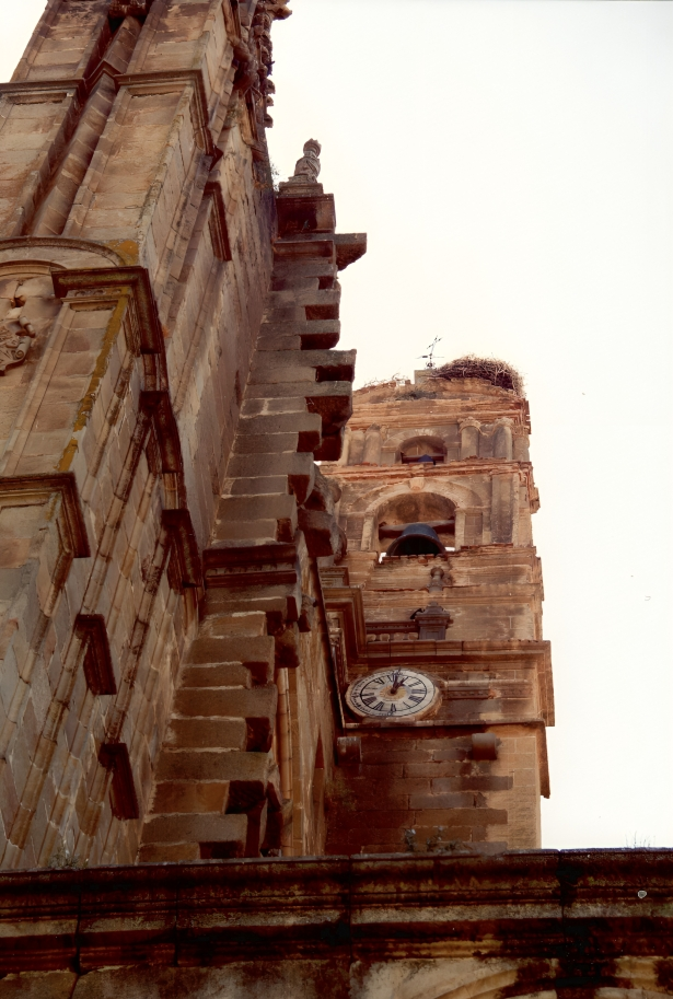 El campanario de la Iglesia de Santa María la Mayor de Trujillo hubo de ser reconstruido en el siglo XVI en estilo gótico prácticamente en su totalidad. En 1871 el campanario tuvo que ser demolido; a fines del siglo XX se decidió reconstruirlo, siguiendo fielmente grabados y fotografías de época.
