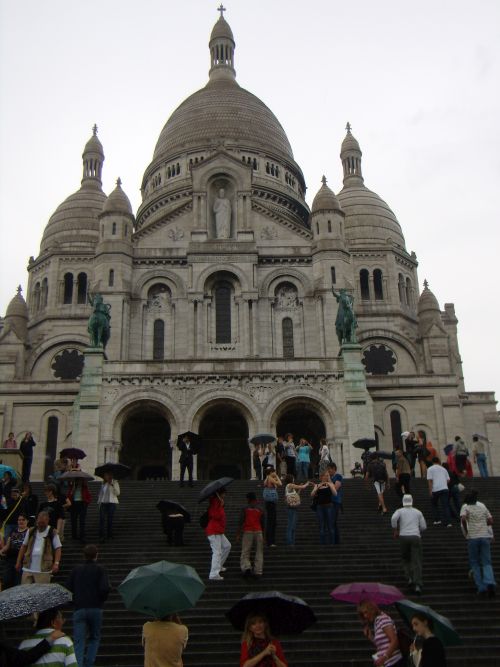 Tuvimos que refugiarnos en uno de sus cafés para no coger una pulmonía, a consecuencia del inmenso chaparrón. Antes de bajar la colina, visita a la Basílica del Sacré Coeur.