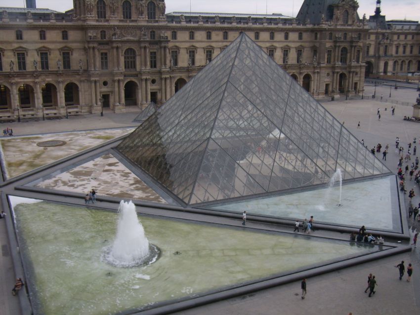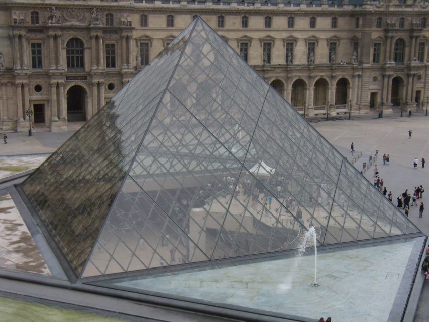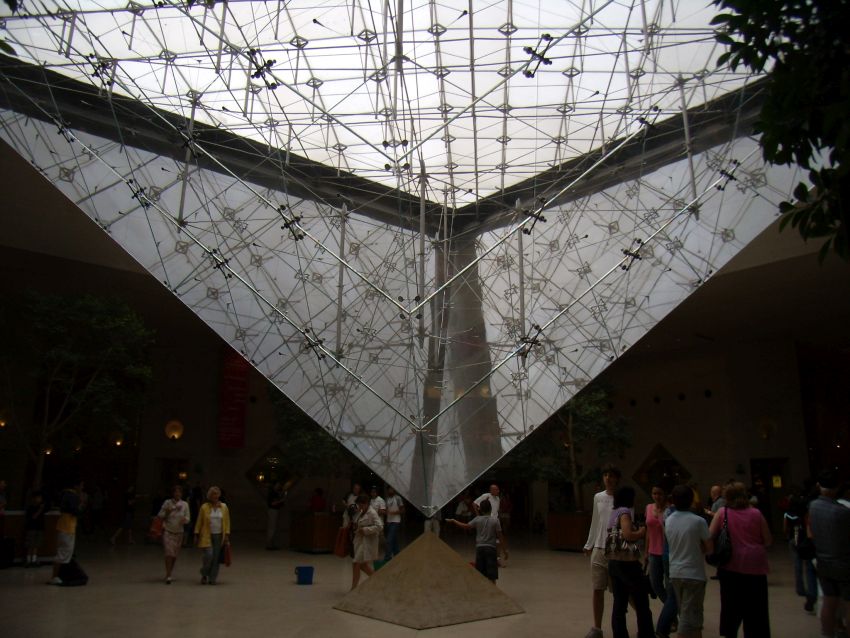 Y de ahí al Louvre, al que accedimos por el aparcamiento subterráneo, lo que te obliga a empezar la visita por el final de «El código Da Vinci», por La Pyramide Inversée, [(…) las dos pírámides se apuntaban la una a la otra, y sus puntas casi se tocaban. «El cáliz encima. La espada debajo» (…)]. De ahí, atravesando galerías, tiendas y otras dependencias, llegamos al Hall Napoleón, inicio de los recorridos por las alas Sully, Denon y Richelieu.