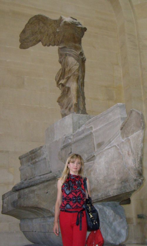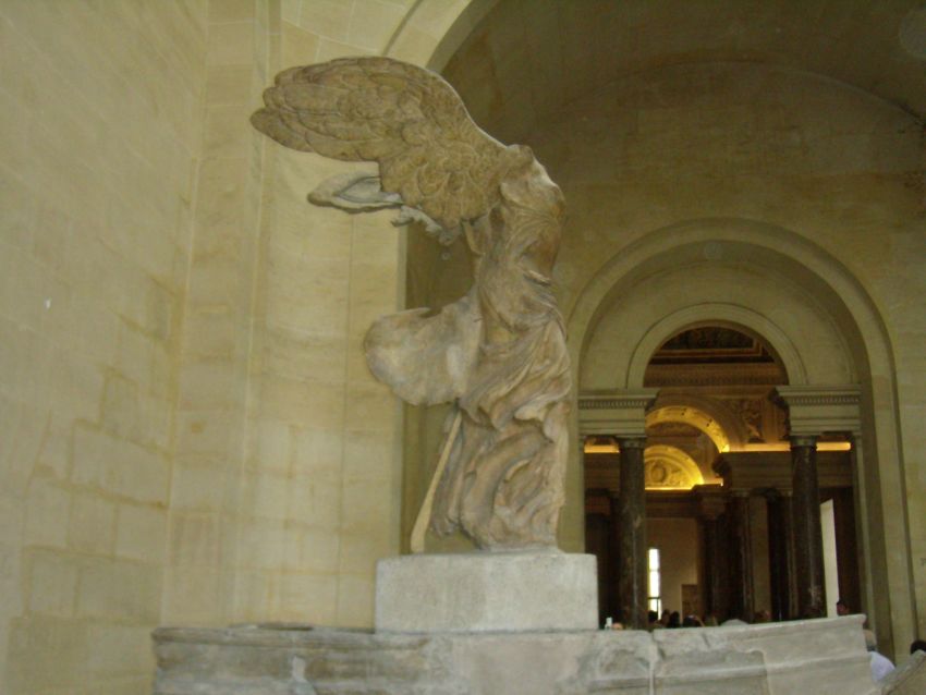 Y de ahí, a la famosa escalera con la Victoria de Samotracia sobre la proa de la nave que ella llevara al éxito. Impresionantes ambas.