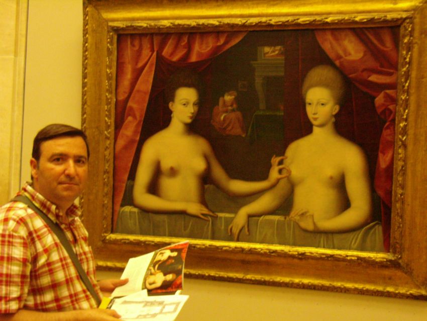 Tras contemplar la Galería de Apolo, sin las joyas de la corona, pasamos a la Salle des États, en la que se expone el cuadro más famoso del mundo, la Mona Lisa de Leonardo, tras su panel protector de plexiglas, a la que es difícil acercarse por el gentío que allí se congrega.