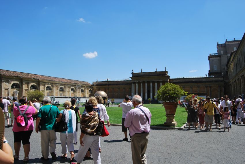 Había mucho que ver antes de llegar a las estancias de Rafael y a la Capilla Sixtina. Nada más y nada menos que un conjunto fantástico y grandioso de edificios con más de 11.000 habitaciones, salones, museos, galerías, capillas, corredores, patios y jardines, ricos en tesoros de arte de todo género.