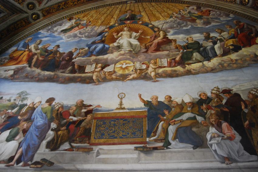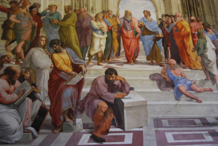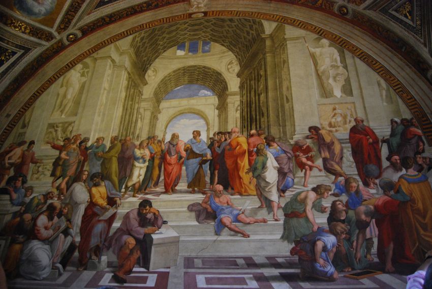 Seguíamos nuestro lento devenir hacia la Capilla Sixtina, pero antes tuvimos ocasión de maravillarnos con las salas y galerías de Rafael, sobre todo con la gran obra de arte que representa la celebración del pensamiento y ciencia humanos: la Escuela de Atenas.