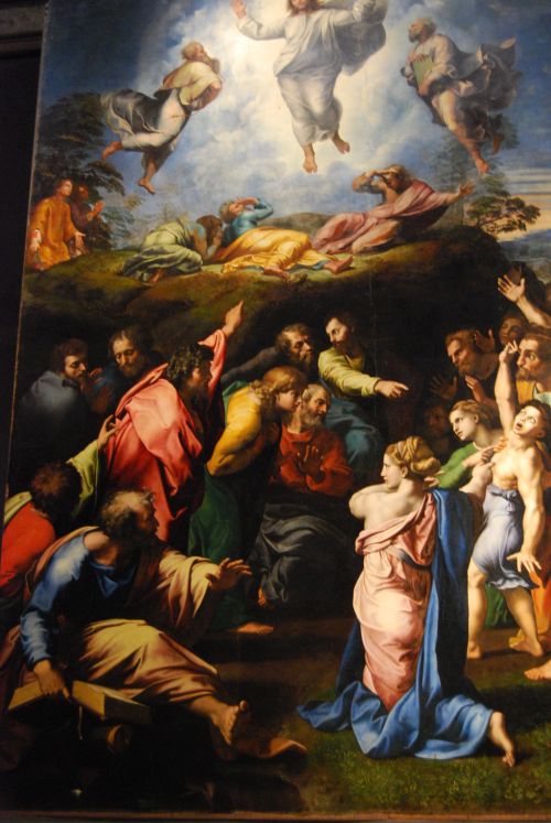 Todavía tuvimos tiempo de recrearnos con la Pinacoteca Vaticana, desde los primitivos artistas italianos y bizantinos, pasando por Giotto, Fray Angélico, Rafael, Leonardo da Vinci, Ticiano y otros tantos. Comentario aparte merece la Transfiguración que Rafael no terminó por su repentina muerte en 1.520 a los treinta y siete años de edad, cuadro éste que estuvo expuesto en la Capilla Sixtina durante los funerales del artista.