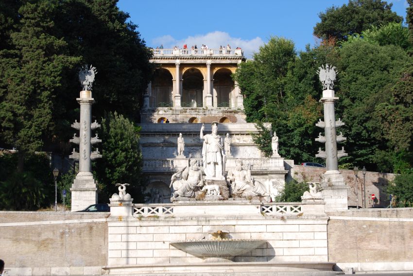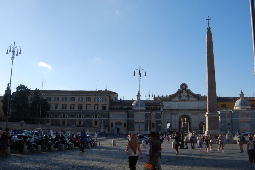 Volvimos a las cercanías de la plaza de San Pedro para comprar algunos souvenirs y tomarnos un helado. Más tarde tomamos el metro para visitar la Piazza del Popolo, es amplia y abierta, de una perfecta forma elíptica, con su obelisco egipcio que termina en forma piramidal ubicado en el centro y sus “iglesias gemelas” de Santa María in Montesanto y Santa María dei Miracoli. Ni los andamiajes impiden admirar su prodigiosa simetría.