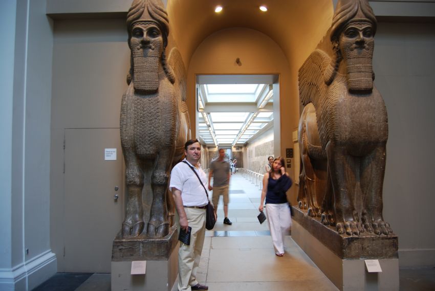 … pasamos a visitar las galerías asirias, con las puertas del Palacio de Khorsabad de entrada al palacio de Sargón II como mejor muestra, un maravilloso ejemplo de los enormes relieves de toros alados con cabezas humanas que guardaban el palacio.