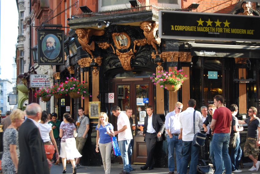 Cuando salimos la tarde era espléndida, con un sol radiante. Nos dispusimos a visitar St. Martin-in-the-Fields, una encantadora iglesia famosa por sus conciertos, que se encuentra al norte de la plaza, pero nos fue imposible. Aprovechamos para tomarnos una buena pinta en un pintoresco pub de la zona, pues esa parecía ser la costumbre de los londinenses cuando salían del trabajo.
