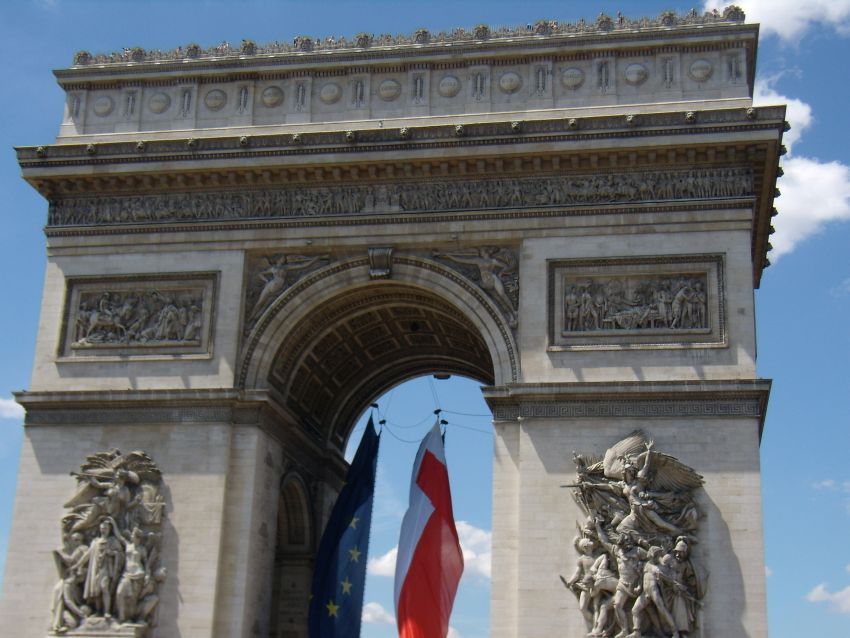 Se acercaba la hora de comer y decidimos volver al metro para trasladarnos a los Campos Elíseos para pasear entre el bullicio de gente. Subimos hasta el Arco del Triunfo y, después de la comida, decidimos realizar alguna compra en las Galeries Lafayette, muy cerca del hotel, permitiéndome el capricho de traerme el maillot amarillo de la ronda gala, próxima a comenzar, para cuando salga en bicicleta por la carretera de Barqueros (sin comentarios).