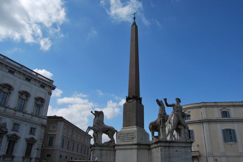 Cuando Valentín e Iku llegaron al «Internacional» comenzamos nuestra visita a la ciudad por la colina del Quirinal, admirando la fachada del Palazzo del Qurinale y las gigantescas estatuas de Cástor y Pólux ubicadas en la piazza junto a uno de los innumerable obeliscos y una de las innumerables fuentes.