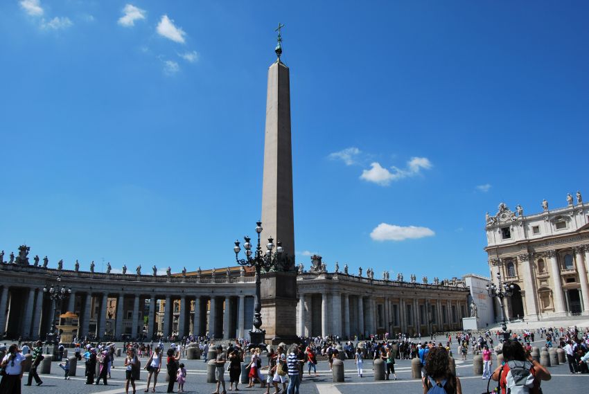 Accedimos a la Ciudad del Vaticano a través de la Via della Conciliazione que desemboca en la plaza de San Pedro, proyectada por Bernini entre 1656 y 1667, y a su obra más grandiosa, la Columnata.