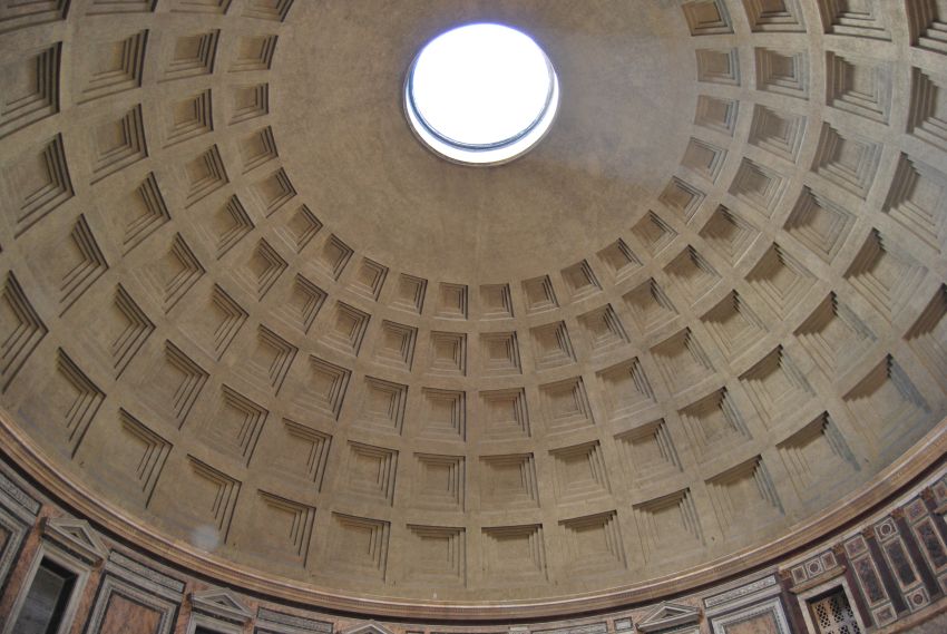 Su pórtico, sus puertas de bronce, su solemne cúpula, sus capillas, en una de las cuales se encuentra la tumba en la que yacen los restos mortales de Rafael, hacen de él el más perfecto de entre los monumentos clásicos existentes en Roma.