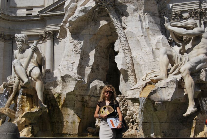 Nuestro próximo destino era Piazza Navona con sus tres magníficas fuentes, entre las que destaca la Fontana dei Fiumi, la fuente de los Cuatro Ríos de Bernini, soporte de su obelisco, más famoso si cabe tras los «ángeles y demonios» de Dan Brown, que parece como si nos siguiera en nuestros viajes, el año pasado en París y este en Roma.
