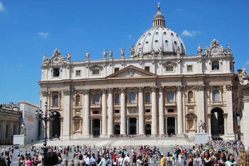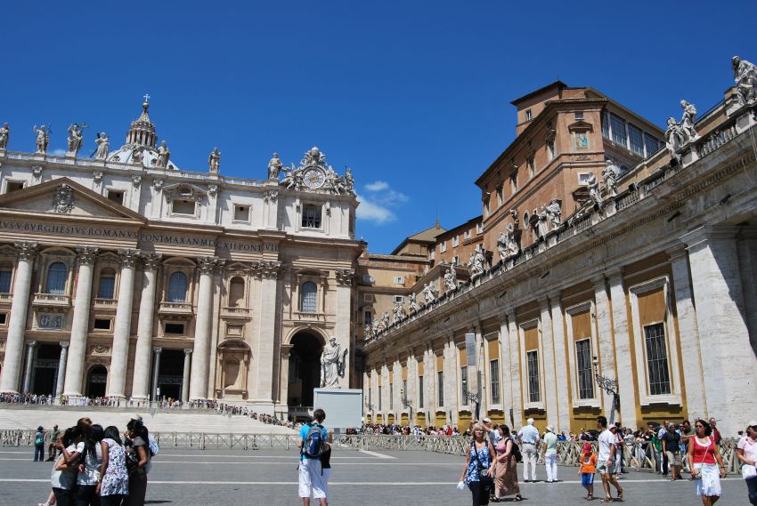 Accedimos a la Ciudad del Vaticano a través de la Via della Conciliazione que desemboca en la plaza de San Pedro, proyectada por Bernini entre 1656 y 1667, y a su obra más grandiosa, la Columnata.