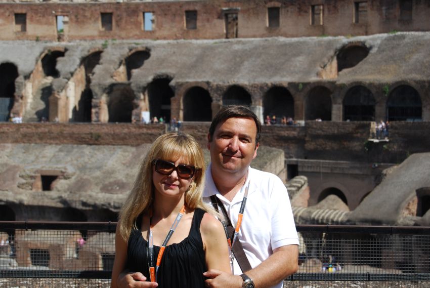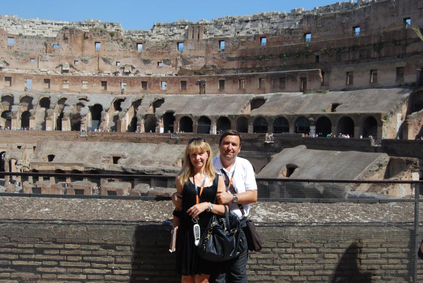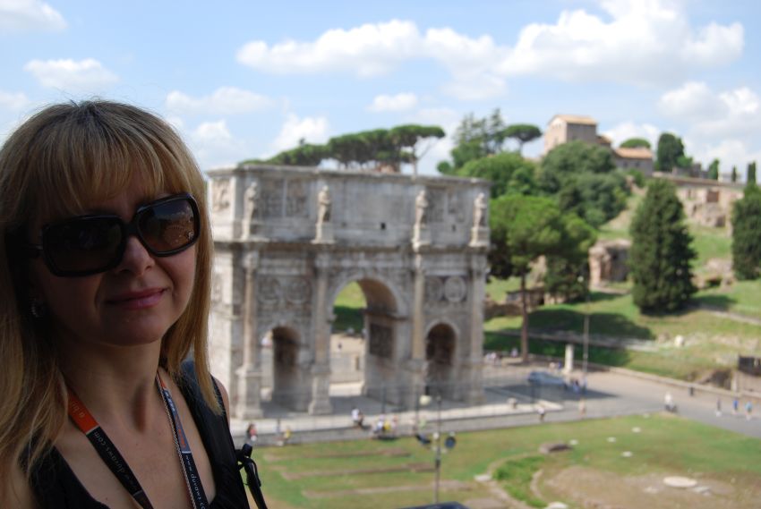 Más tarde, accedimos al Foro Romano, centro de la vida civil y económica de Roma en la época republicana, a través del Arco de Tito, que el Senado levantó después de la muerte del emperador, como recuerdo de la conquista de Jerusalén. Caminamos por la Vía Sacra contemplando los restos de la inmensa Basílica de Majencio, llamada también de Constantino, el Templete redondo de Rómulo, el Templo de Venus y Roma y el de Vesta.