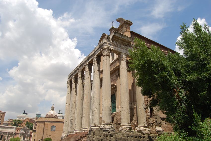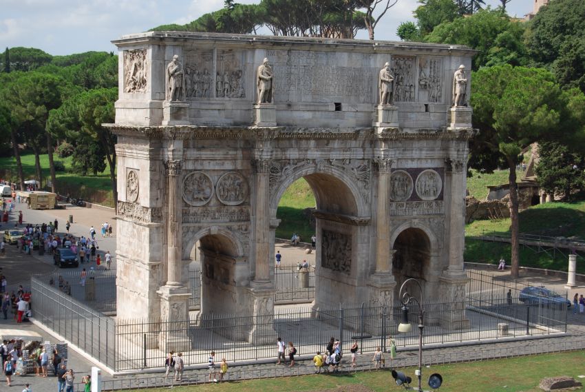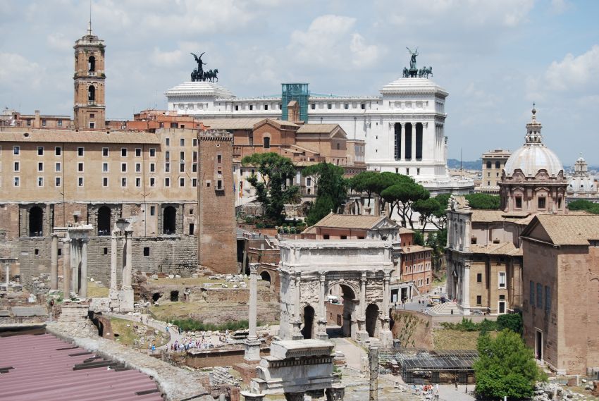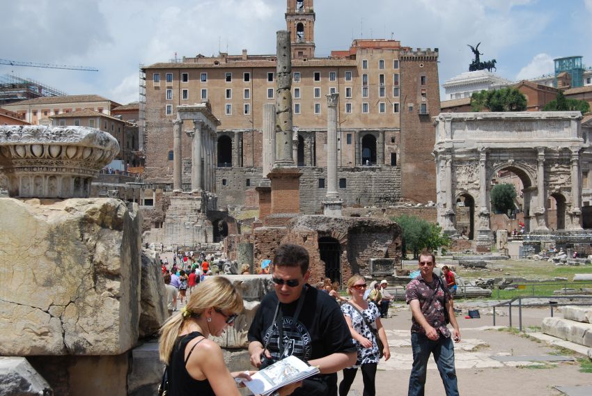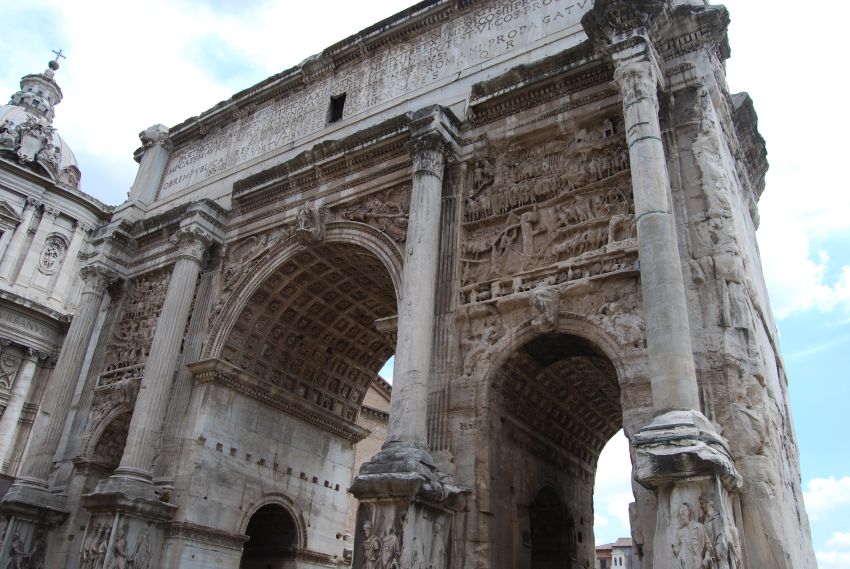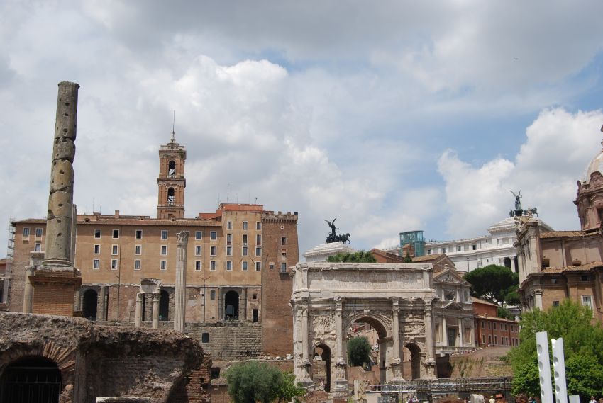La Basílica Julia, el Templo de Saturno, la Columna de Foca, última memoria clásica del Foro y el imponente y rico hasta parecer recargado Arco de Septimio Severo, levantado en honor de Septimio y de sus dos hijos Caracalla y Geta, fueron pasando uno a uno ante nuestra vista.
