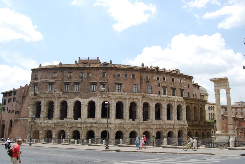 Se acercaba la hora de comer y reponer fuerzas de la intensa jornada matutina. Todavía tuvimos tiempo de contemplar el Teatro de Marcelo y atisbar la roca que se cree la Rupe Tarpea, desde lo alto de la cual fue despeñada la traidora Tarpea y, desde aquel día, todos los traidores de Roma.