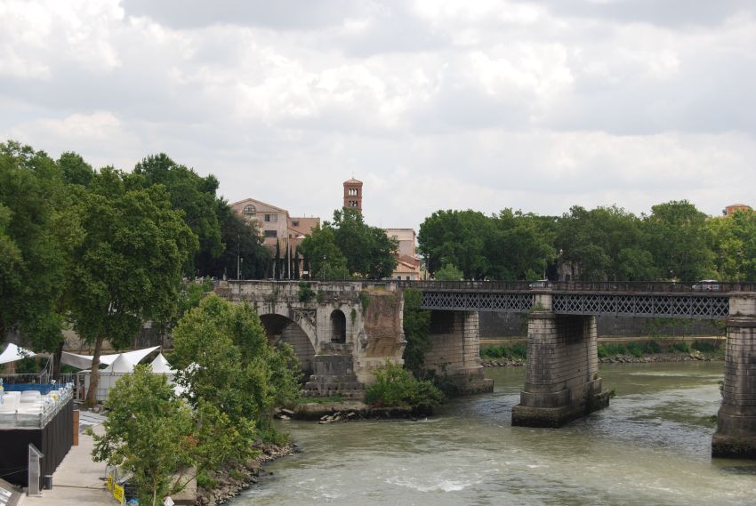 Nos asomamos sobre el Tíber y divisamos la Isla Tiberina, a la que accedimos a través del Puente Fabricio. El Puente Cestio nos permitió volver a la ciudad, al Trastevere.