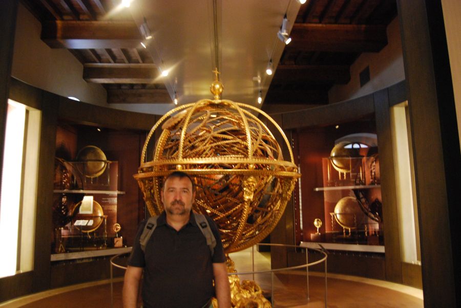Nuestro destino era el Museo Galileo, situado en la Piazza de’ Giudici, a las espaldas de la Galleria degli Uffizi. El Museo Galileo conserva los únicos instrumentos inventados y construidos por Galileo que han llegado hasta nosotros. Destacan por su especial importancia los dos telescopios y la lente objetiva del telescopio con el que el científico pisano descubrió los satélites de Júpiter.