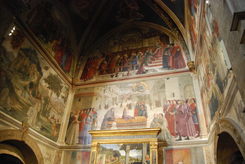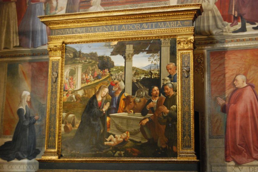 En la Piazza Santa Trinita pudimos visitar la Chiesa di Santa Trinita. En su interior encontramos un espacio sereno y sencillo, dividido en tres naves con dos series de cinco capillas a cada lado. Entre las obras maestras que conserva la basílica destacan una Anunciación de Lorenzo Monaco; los frescos de la capilla Sassetti, realizados por Domenico Ghirlandaio, con escenas de la vida de san Francisco; o la Adoración de los pastores del altar de dicha capilla, obra también de Ghirlandaio.