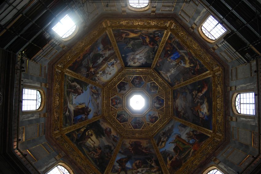 La Sacristía Nueva fue diseñada por Miguel Angel y es la capilla funeraria que alberga las tumbas de la generación joven de los Médici, pero forma parte del conjunto de las Capillas Mediceas, que visitamos a continuación. Las Capillas Mediceas sirven como mausoleo particular a los miembros más jóvenes de la familia Médici. Consta de tres recintos: la Capilla de los Príncipes, la Capilla del Tesoro y la Sacristía Nueva. La Capilla de los Príncipes fue construida en 1604 siguiendo los diseños de Giovanni de Médici, hijo natural de Cosme I, finalizándose en 1929. Presenta una planta octogonal cubierta con cúpula, siguiendo las normas del neoclasicismo. Las paredes de la capilla se cubren con mármoles incrustados de piedras preciosas mientras que la cúpula está decorada con frescos realizados por Pietro Benvenuti en 1828.