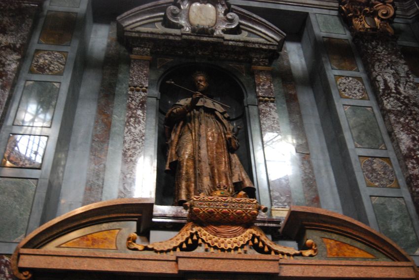 Llegamos a la Basílica de San Lorenzo, para la que Brunelleschi creó una planta de cruz latina que, a pesar de ser espacialmente longitudinal, produce un cierto efecto visual de centralización en la zona del transepto al penetrar en esa zona la luz de la linterna de la cúpula. El fallecimiento de Brunelleschi motivó que Antonio Manetti se encargara de los trabajos pero la fachada no se llegó a concluir por lo que se pensó en Miguel Angel para llevar a cabo este proyecto. Continuas rivalidades entre los canteros impidieron que el plan se pusiera en marcha, quedando inacabada.