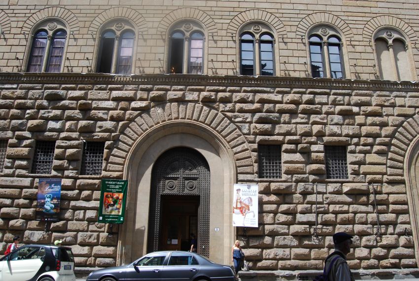 De camino a la Via dè Tornabuoni visitamos el Palazzo Strozzi, uno de los símbolos de la arquitectura renacentista, cuya construcción fue promovida por Filippo Strozzi, miembro de una de las más ricas e influyentes familias florentinas que cometieron el error de enfrentarse a los Médici, teniendo que refugiarse en Lyon para rehacer su amplia fortuna. El Palazzo Strozzi sigue el modelo del Palacio Médici de Michelozzo, apareciendo como una pequeña fortaleza en el centro de la ciudad. En el interior, el espacio se distribuye alrededor de un patio realizado por Il Cronaca, espacio porticado en sus cuatro lados.