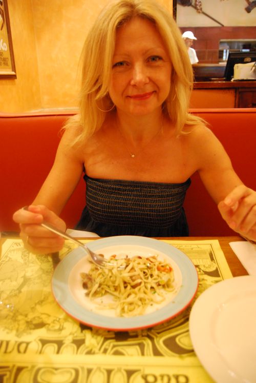 No podíamos marchar sin probrar los tagliolini con le vongole, que estuvieron precedidos de un buen affeittato misto. De postre, tiramisú. Nos despedimos de Bianca, que nos dio algunas indicaciones sobre Venecia, y a la que le deseamos unas felices vacaciones en su último día de trabajo.
