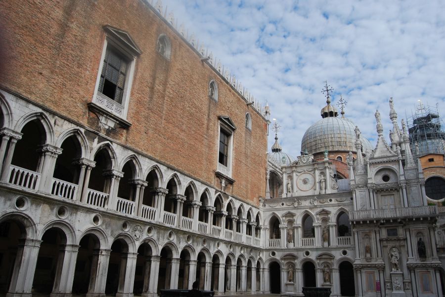 Atravesamos de nuevo la Plaza de San Marcos de camino al Palacio Ducal, máxima expresión de la vida republicana y del poder político, residencia del dux, sede del gobierno también con funciones judiciales. Unas curiosas nubes cubrían la ciudad a esa temprana hora de la mañana.