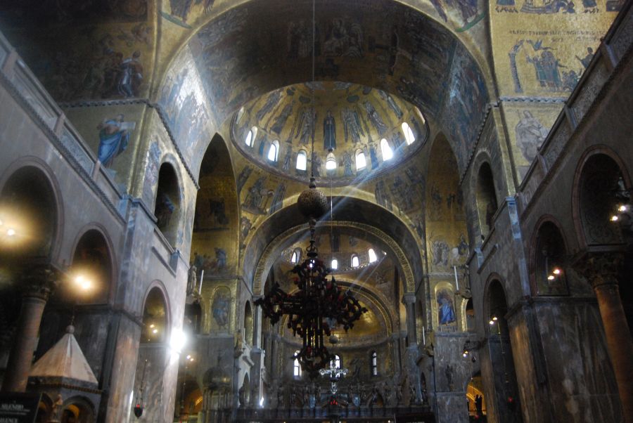 Accedimos a la Basílica de San Marcos, sin duda el monumento más importante de la ciudad, templo de vida civil y de fe religiosa. Durante aproximadamente mil años ha tenido la función de Capilla Ducal dependiendo directamente del dux, hasta que en 1807 se convirtió en la sede del Patriarca de Venecia y catedral de la ciudad.
