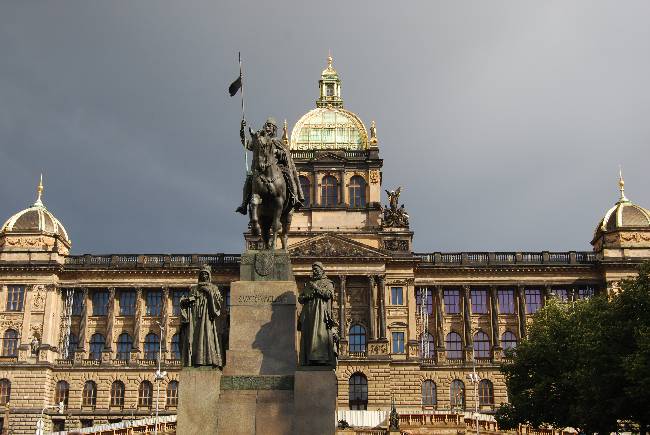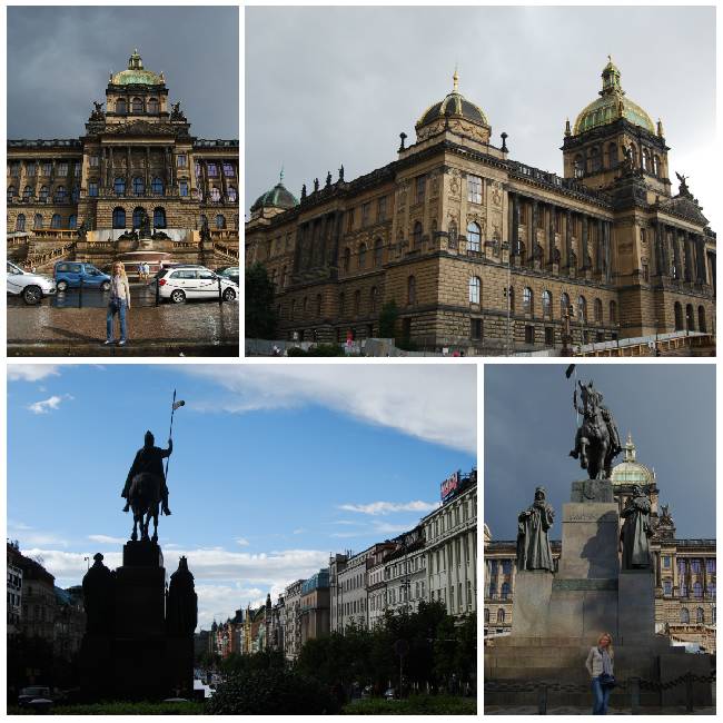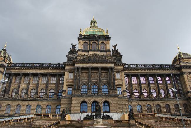 Y a su lado, uno de los elementos más emblemáticos de la Plaza Wenceslao, el edificio del Museo Nacional (Narodní Muzeum). Diseñado en estilo neorrenacentista por Josef Schulz, se acabó de construir en 1890, en el momento de máximo auge de la corriente nacionalista checa que reivindicaba el espíritu nacional del antiguo reino de Bohemia y la separación del Imperio Austro-Húngaro. Dado que en la actualidad se encuentra cerrado, nos tuvimos que conformar con contemplar las estatuas alegóricas que decoran su fachada, sobre todo las de la Historia y la Historia Natural, que flanquean la puerta de entrada.