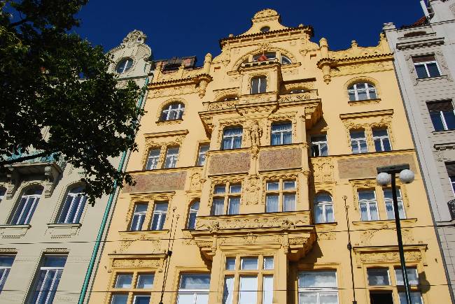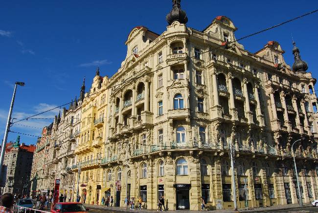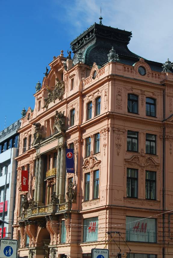 Nos encontrábamos, sin duda, en uno de los lugares en donde mejor se ha conservado en Praga la arquitectura de finales del siglo XIX, el estilo art nouveau. Los antiguos palacios barrocos que rodeaban este espacio fueron demolidos para construir edificios más altos y que seguían la moda arquitectónica que imperaba en Europa, desde Viena hasta Barcelona.