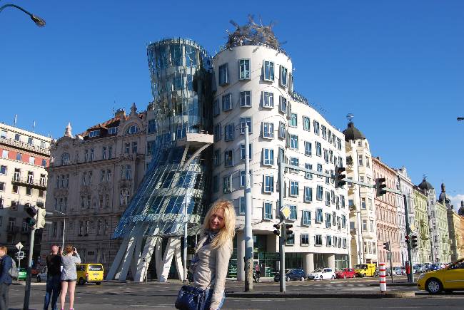 Tančici Dům, la Casa Danzante, también conocido también como Ginger y Fred (ya que por sus sinuosas líneas se asemeja a una pareja que esté bailando) se levanta desde 1996 en la orilla derecha del Vltava y rompió en su momento con el tipo de arquitectura de otros siglos a que nos tenía acostumbrados la ciudad de Praga. Se ha acabado integrando en el contexto urbanístico que le rodea y ya es un elemento más que distingue a la ciudad, aunque cuando se construyó levantó grandes críticas entre los más conservadores, que opinaban que rompía con la estética de la zona.