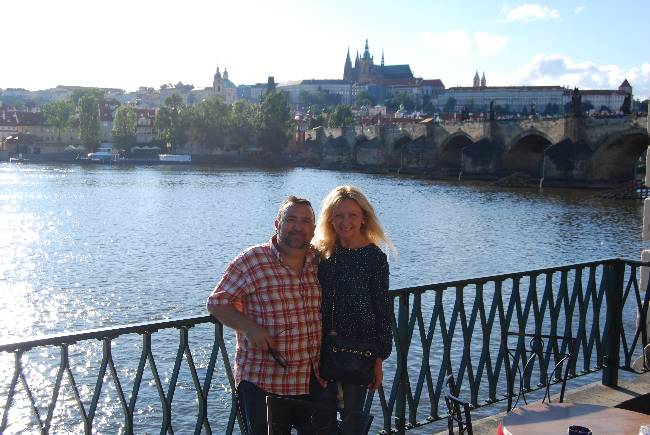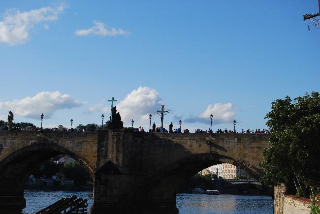 Volviendo al río Vltava, seguimos avanzando por el Muelle Smetana (Smetanovo nabřaži) hasta llegar a las inmediaciones del Puente de Carlos. El Café Lávka, en un promontorio sobre el río, nos pareció un inmejorable lugar para hacer un alto en el camino (la lluvia había dado paso a una más que soleada tarde) y saborear nuestra más que merecida primera cerveza en Praga.