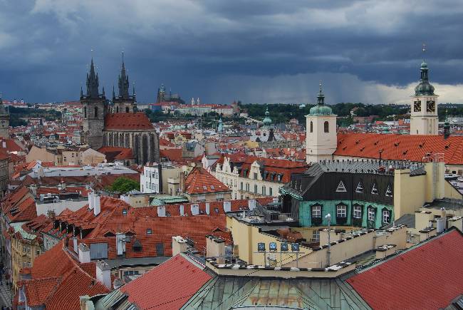 Cuando la sede del poder real regresó al Castillo de Praga, la construcción de la Torre se interrumpió y fue utilizada durante muchísimos años como polvorín, de ahí su nombre. Fue restaurada en estilo neogótico por Josef Mocker entre 1875-1886. Sabiendo que se trata de uno de los mejores lugares para tomar fotografías panorámicas de la Ciudad Vieja decidimos subir a ella, para no perder la costumbre. Desde luego, las vistas no defraudaban…