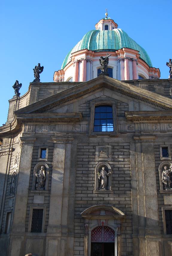 Tras el reconfortante descanso llegamos a la Plaza de los Caballeros de la Cruz (Křižovnické náměstí), que debe su nombre a la orden religiosa y militar homónima que en el siglo XIII fundó la princesa checa Inés Premislita, que llegaría a convertirse en Santa Inés de Bohemia. En la plaza pudimos contemplar la Iglesia de San Francisco Serafín construida en el siglo XVII en estilo barroco por Jean Baptiste Mathey, sobre la Iglesia del Espíritu Santo, gótica, de la cual se conservan numerosos elementos.