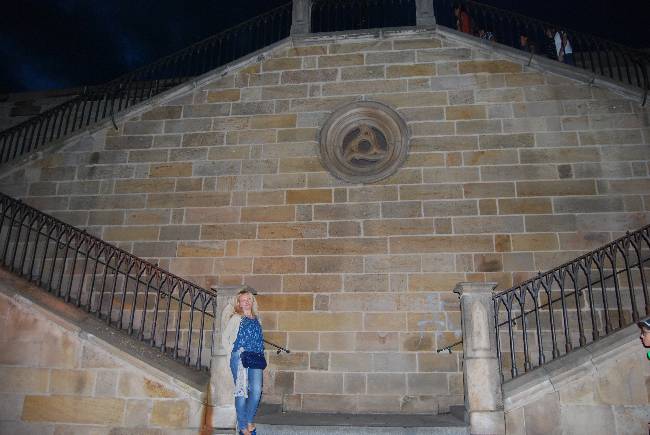 Una vez que llegamos a la calle principal, llamada Na Kampé, ascendimos por las las escaleras laterales del Puente de Carlos, que se encuentran detrás de la estatua de Santa Lutgarda, y volvimos a él, ya en plena noche, pero difícil de flanquear al igual que a plena luz del día.