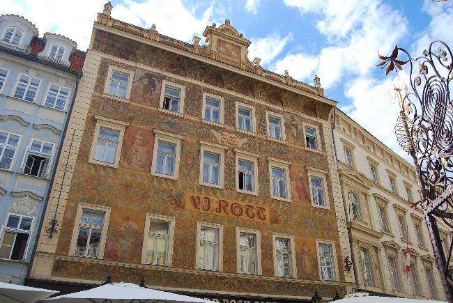 La casa que posiblemente destaca sobre el resto es la que ocupa el número 3, la Casa Rott. La casa lleva el nombre del propietario de la casa desde 1855, Vincenc Josef Rott, un próspero hombre de negocios praguense. El nombre del propietario (VJROTT) se ve escrito en mitad de la fachada. El exterior fue rediseñado a finales del siglo XIX por Mikulaš Aleš. Los frescos son obra de Ladislav Novák y de Arnost Hofbauer y representan distintas herramientas de metal, así como alegorías de trabajos manuales, detalles florales y escenas mitológicas.