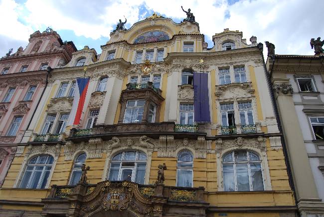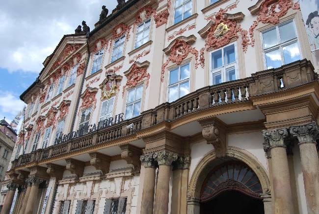 Volviendo a la Plaza de la Ciudad Vieja, a la izquierda de la Iglesia de Nuestra Señora de Týn encontramos el Palacio Goltz-Kinsky, con una suntuosa fachada rococó. En este edificio se encontraba el Liceo Alemán, al cual asistió Franz Kafka.