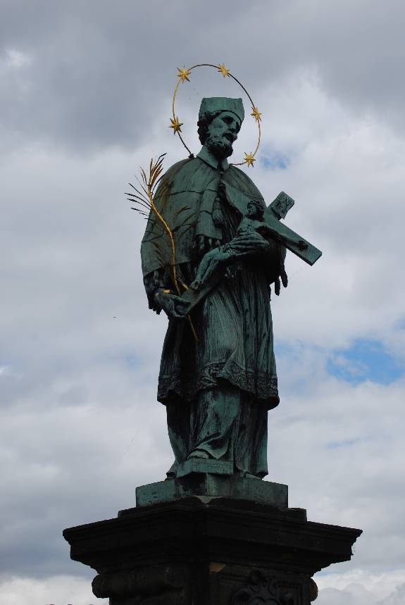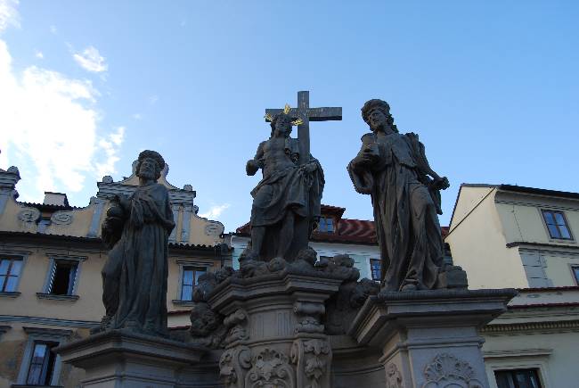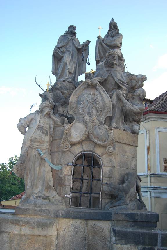 El Puente de Carlos une la Ciudad Vieja con la Malá Strana y a ambos extremos se levantan torres. En el momento de su construcción no estaba adornado por las estatuas que, a lado y lado, flanquean a los visitantes que lo cruzan y que lo han hecho mundialmente famoso. La estatua más antigua, la que representa a San Juan Nepomuceno, es de 1683, y la más reciente, el grupo escultórico de los santos Cirilo y Metodio, evangelizadores de Bohemia, fue esculpido por Karel Dvorák entre 1928 y 1937. Las estatuas que se pueden conservar en la actualidad son réplicas, ya que las originales no se exponen por motivos de seguridad y conservación y se conservan en el llamado Lapidarium.
