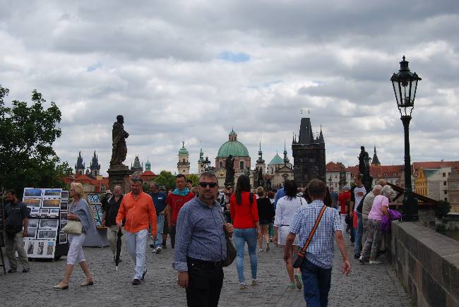 La comida no podía esperar más. El copioso desayuno del Hilton había pasado a mejor vida. Comimos en la pizzería Canzone, en la calle Josefská, una de las que desemboca en la bulliciosa calle Mostecká (Calle del Puente) que nos condujo, de nuevo, al Puente de Carlos.