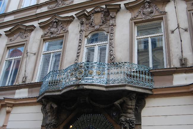 A la derecha, en el número 12, se halla el Palacio Hrzán, uno de los ejemplos más espectaculares del barroco checo de principios del siglo XVIII, con una suntuosa decoración escultórica en su fachada.