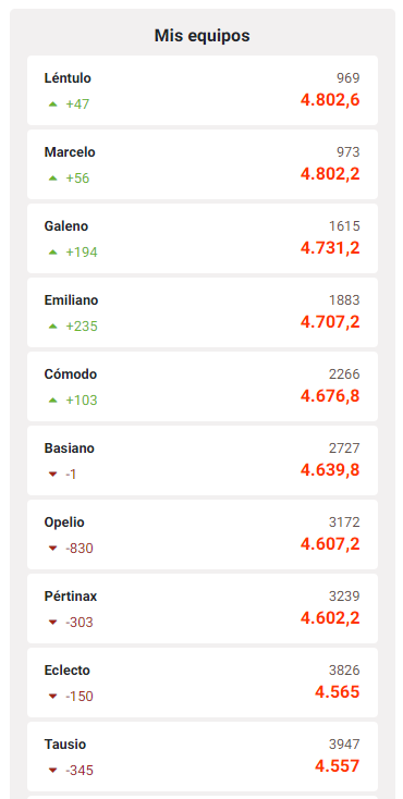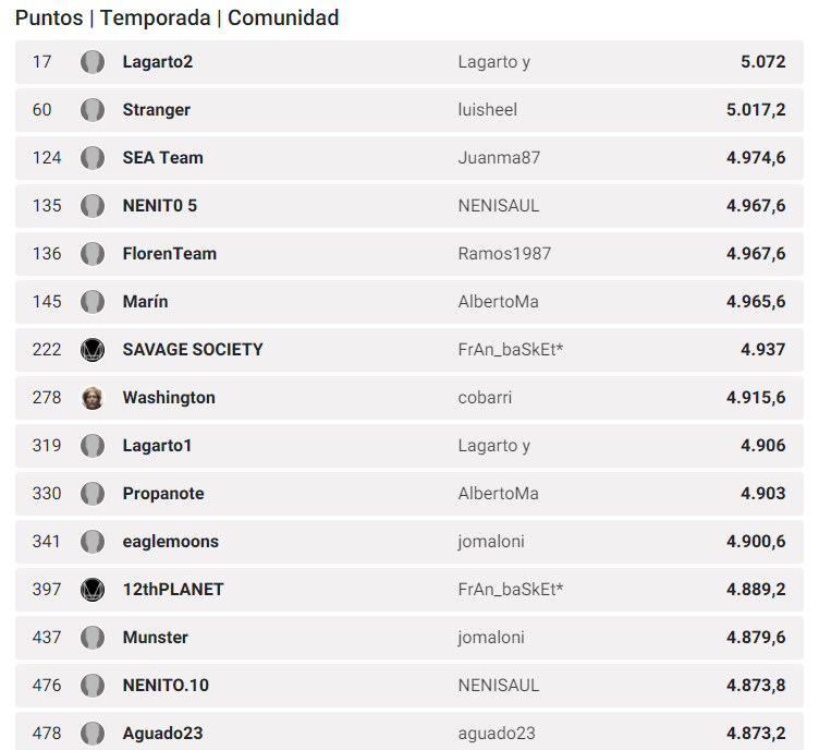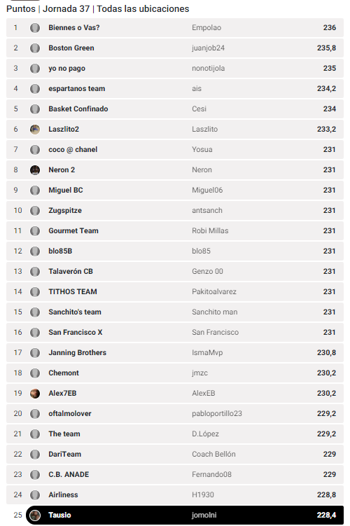 El puesto final alcanzado es el 969º con el equipo Léntulo y sus 4.802,6 puntos, que no es suficiente para acabar entre los treinta primeros de la clasificación provincial. Ese privilegio se lo dejamos a cobarri, que con su equipo Washington y sus 4.915,6 puntos finaliza en el noveno puesto de esta clasificación (278º de la clasificación general).