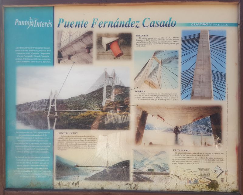 Se trata de un puente atirantado que cruza el embalse de Barrios de Luna, inaugurado en 1983, siendo el puente atirantado con el vano más largo del mundo durante algunos años, y también el récord de longitud de un puente atirantado de hormigón pretensado.