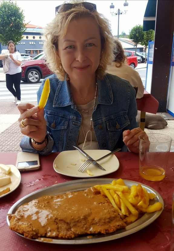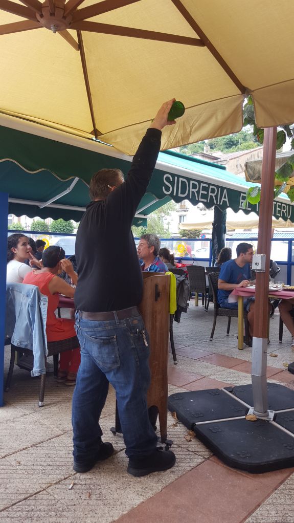 Hay que alimentar la vista y el espíritu, pero también el cuerpo. Se acercaba la hora de comer y la Sideería el Tarteru nos pareció una buena opción. Y menos mal que decidirnos sentarnos pronto, pues no admiten reservas y en unos minutos la cola para tomar asiento se hizo interminable. Todo un espectáculo ver como el personal escancia la sidra.