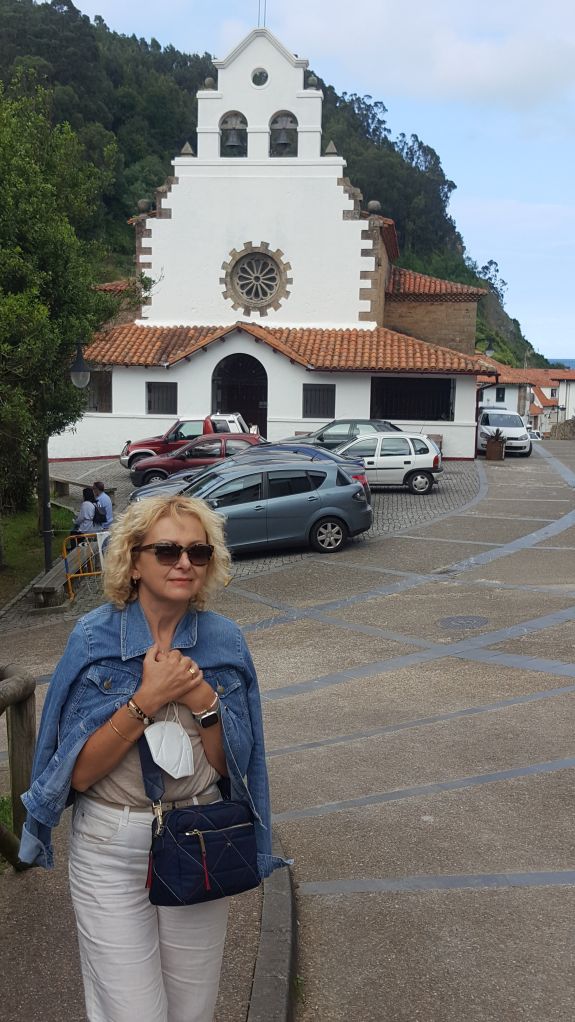 Dejamos el coche en un aparcamiento que hay antes de llegar a Tazones y antes de salir de él vimos la Iglesia de San Miguel, en cuya fachada blanca destaca el rosetón situado bajo la espadaña con las campanas. Es la iglesia parroquial de Tazones y se construyó en 1950 en sustitución a otra que se encontraba en el barrio de San Roque que fue quemada en la guerra civil.