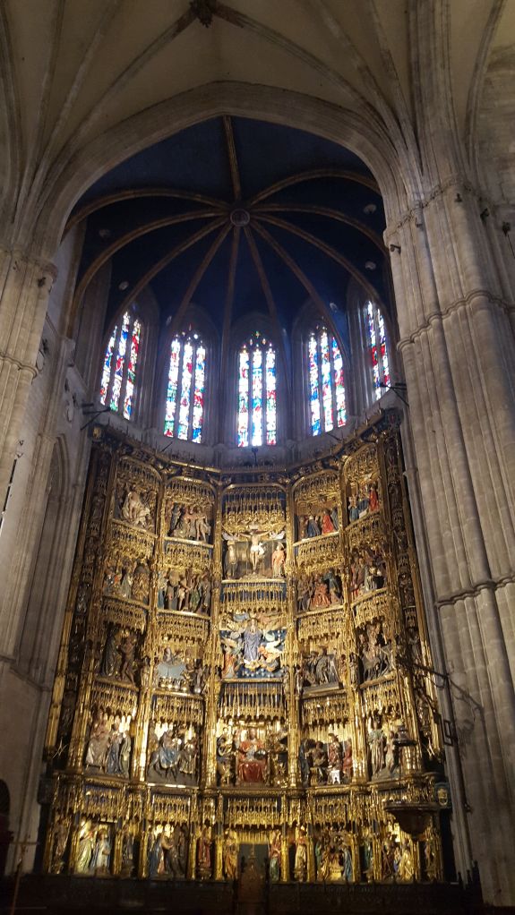 En el interior podemos ver entre otras muchas maravillas; el Retablo Mayor, de estilo hispano-flamenco, el Cristo de Velarde, de Berruguete y la Capilla del Rey Casto en donde se encuentra el Panteón de Reyes.