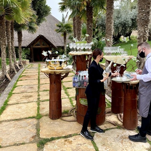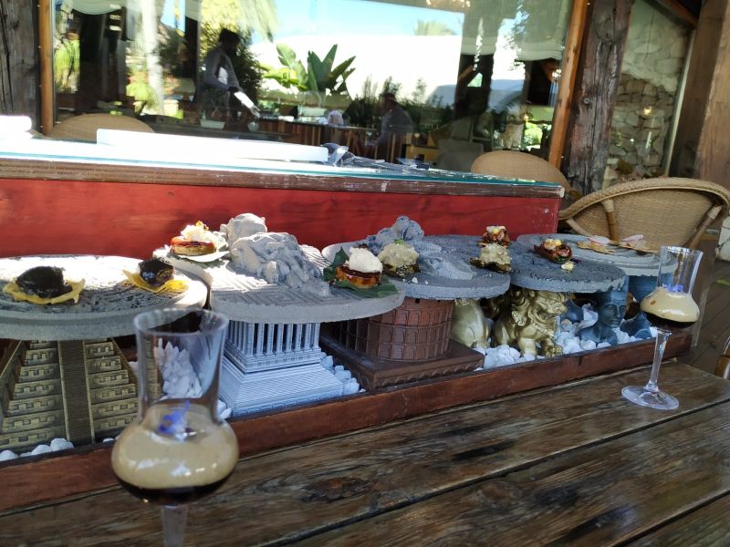 La experiencia sigue un recorrido prefijado: jardín, huerto, terraza y cabaña. En el jardín tomamos los primeros cuatro aperitivos en sendas estaciones temáticas a las que nos vamos desplazando paseando tranquilamente.