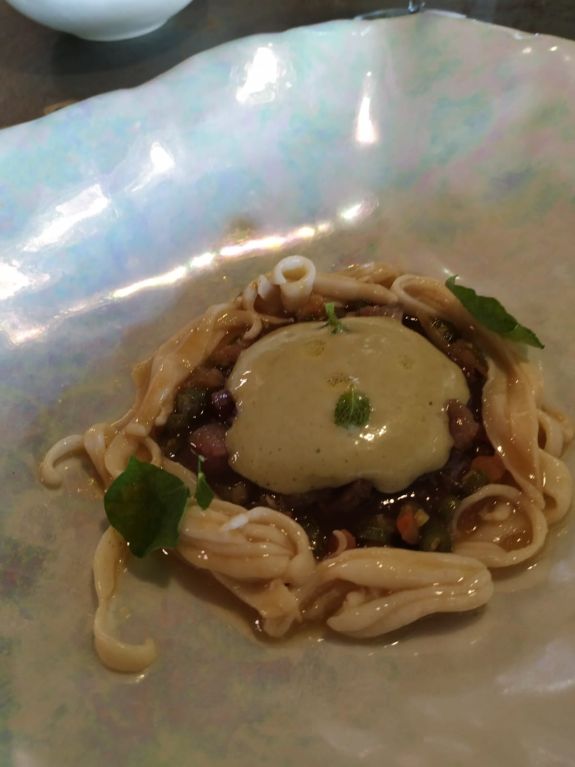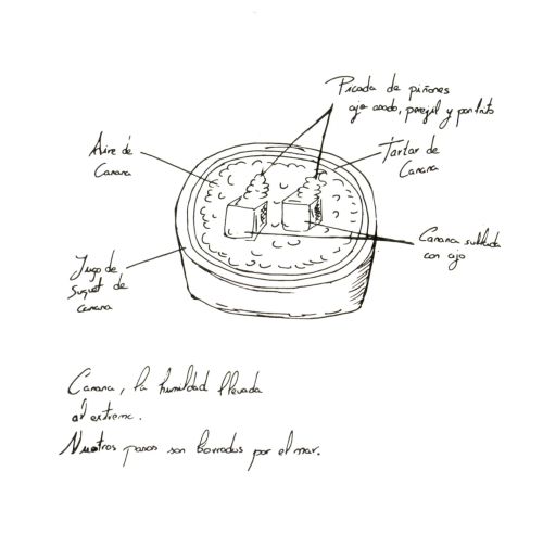 Antonio Machado fue nuestro siguiente poeta. En esta estación la canana era la protagonista, en varias presentaciones: tartar, salteada con ajo, jugo de suquet, aire. Acompañado de un picado de piñones, ajo asado, perejil y pan frito.